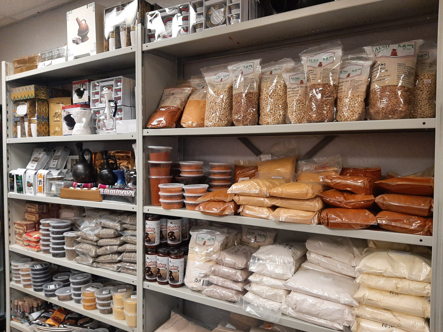 We carry: injera, berbere, shiro, coffee, Teff (variety), mogogo/mtaj, jebena, finjal, fernelo/mdija and many more traditional items.